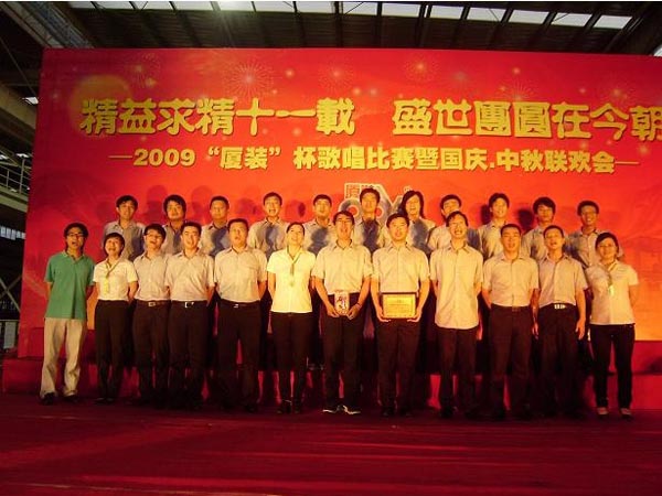 為喜迎“國慶·中秋”雙節(jié)的到來,慶祝廈裝公司成立11周年,廈裝公司于2009年9月29日舉行了規(guī)模盛大的“國慶·中秋”大聯(lián)歡活動。此次活動包括“歌唱祖國”歌唱比賽、頒獎儀式、文藝表演、中秋晚宴、中秋博餅等幾個環(huán)節(jié)。